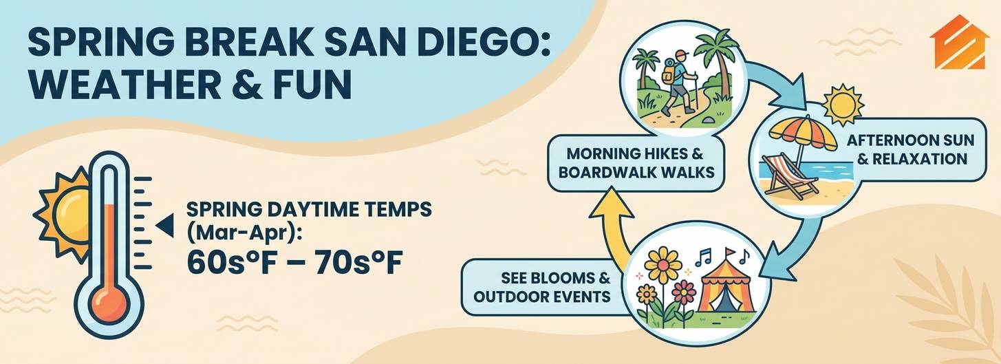 San Diego is famous for its perfect weather and laid-back vibe. During March and April, the daytime temperatures usually rest comfortably in the mid-60s to low 70s. This makes it a great time to be outside without getting too hot.