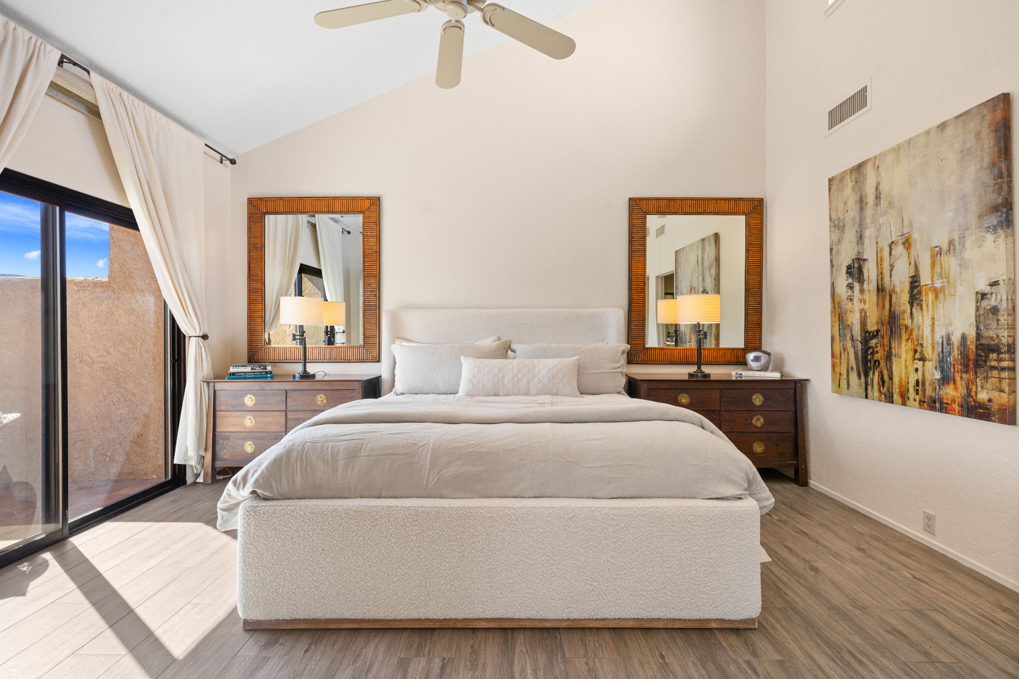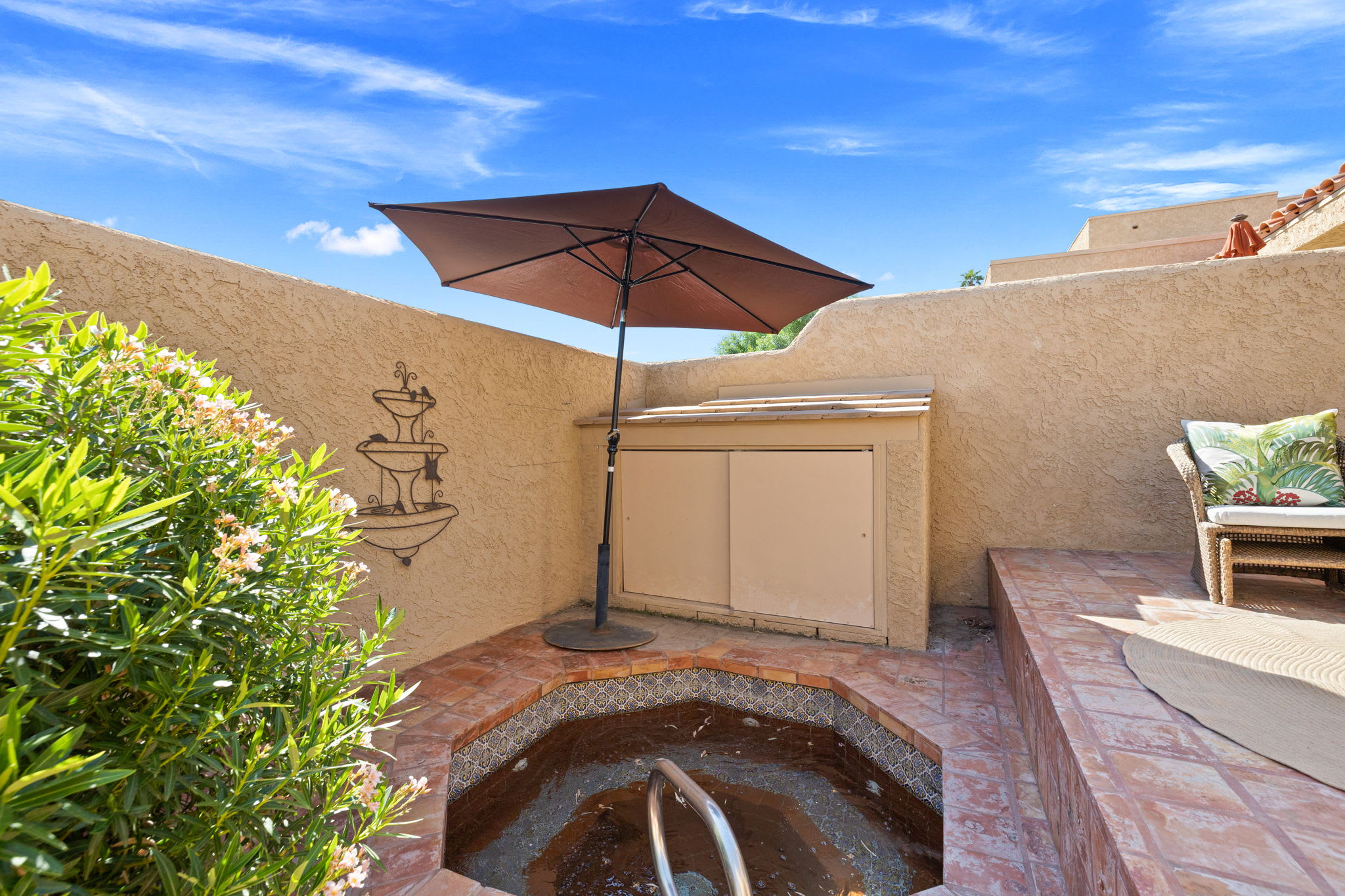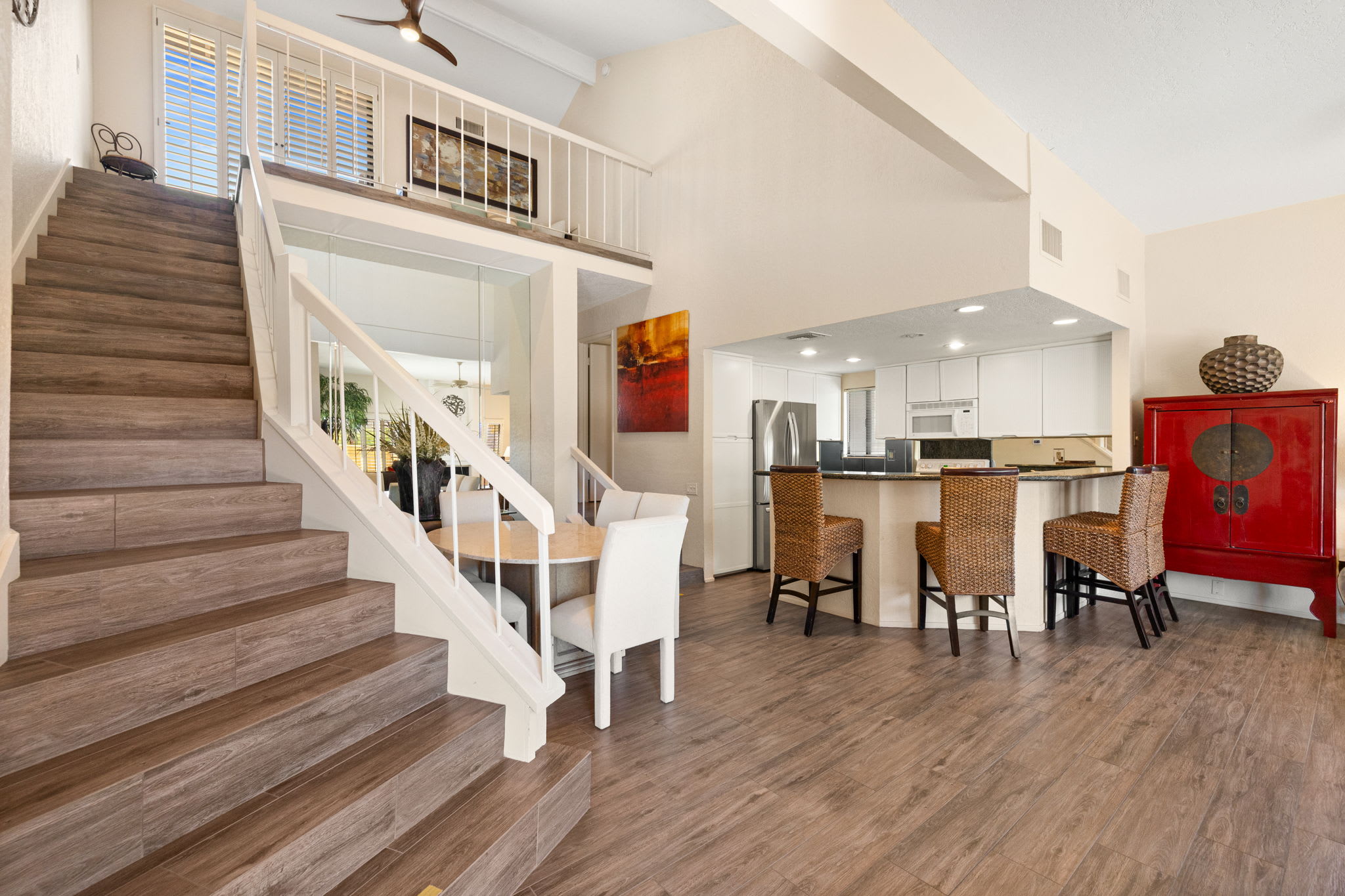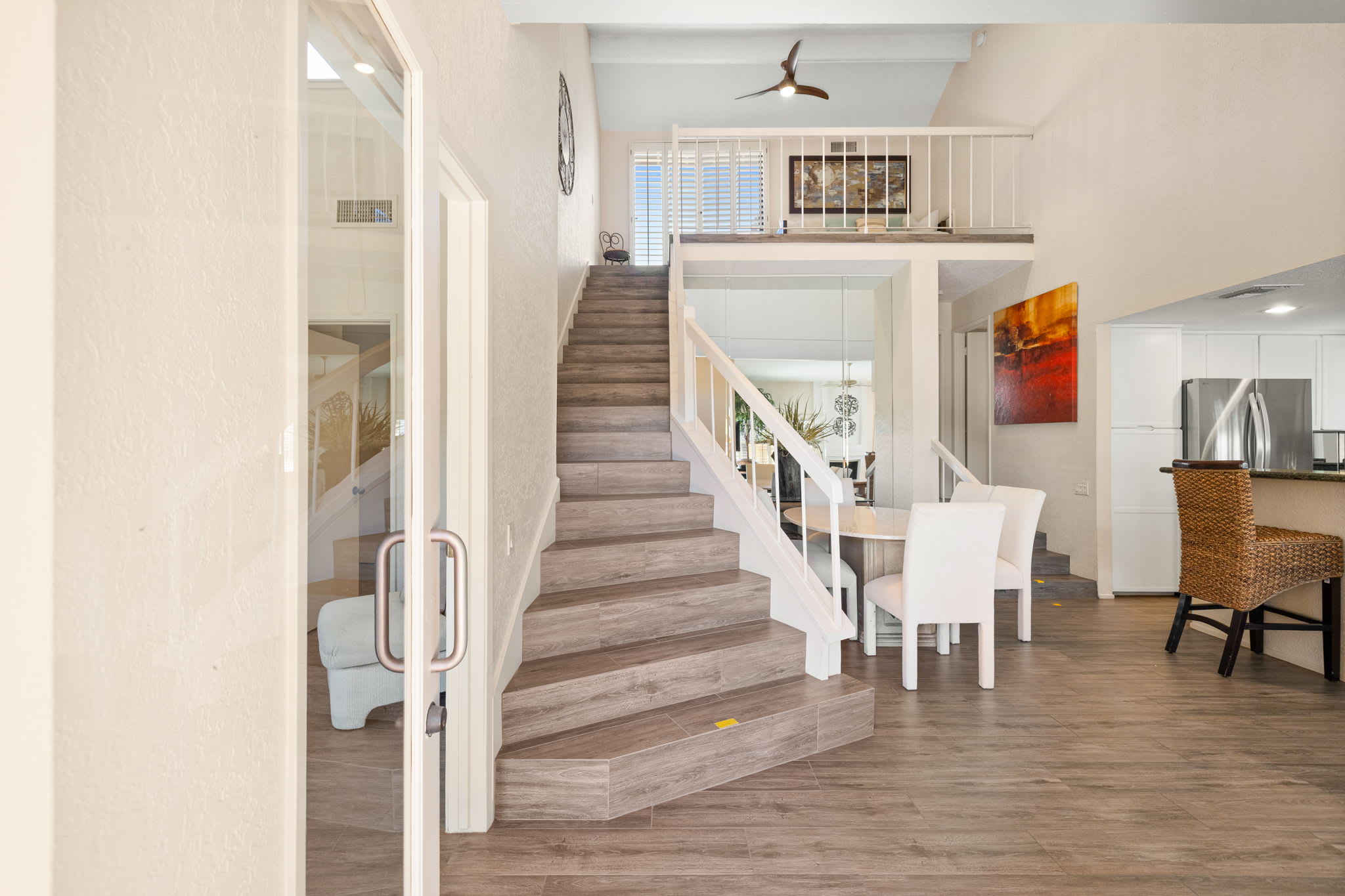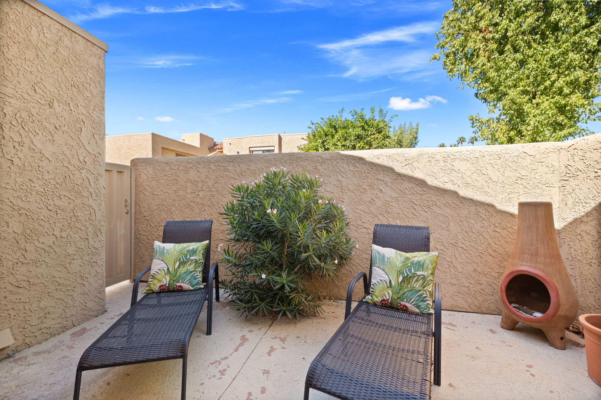 Step outside to enjoy your choice of three private outdoor areas. Unwind in the front patio’s in-ground hot tub, enjoy an alfresco meal on the back patio, or sip your morning coffee on the large second-floor balcony while taking in beautiful desert and mountain views.