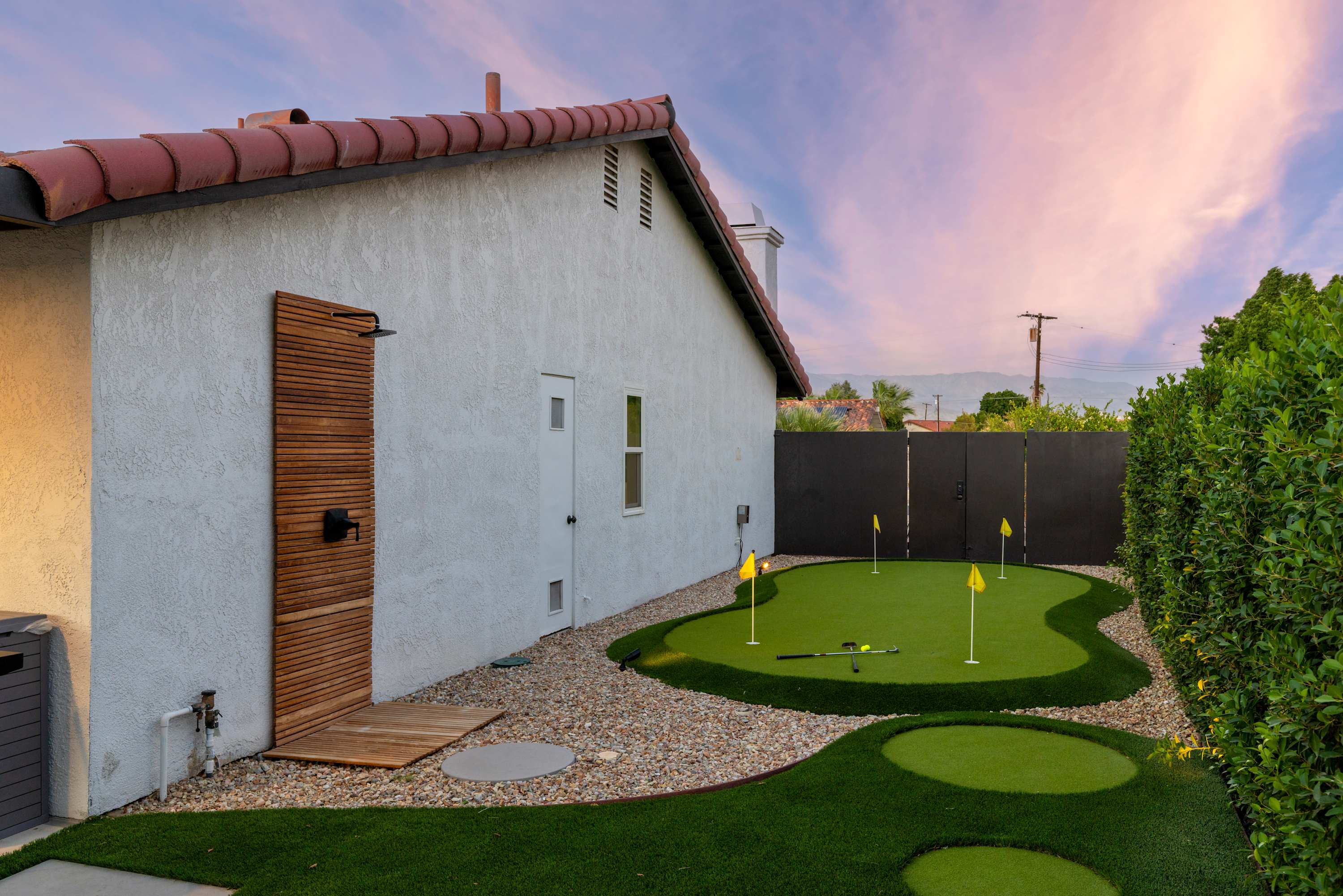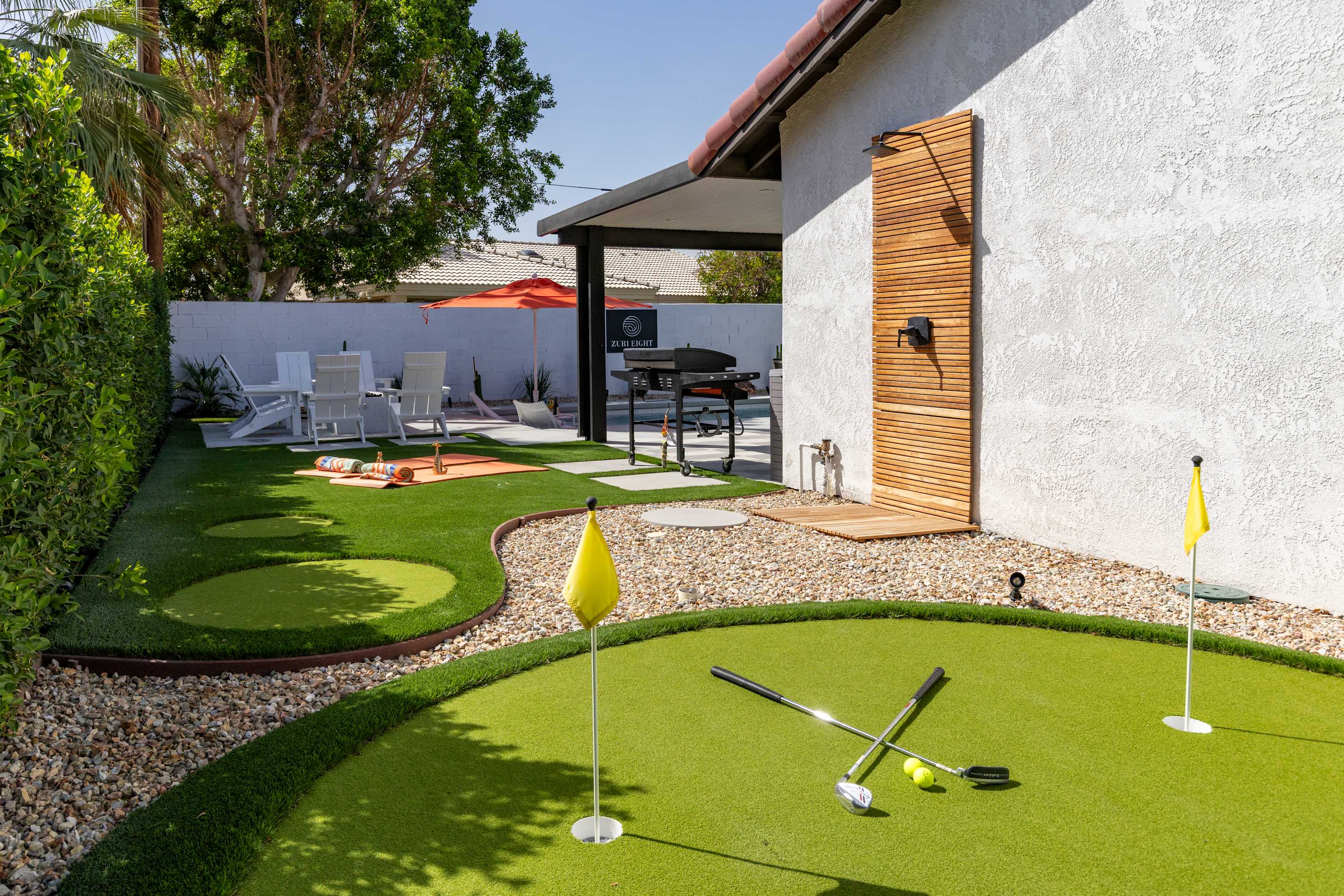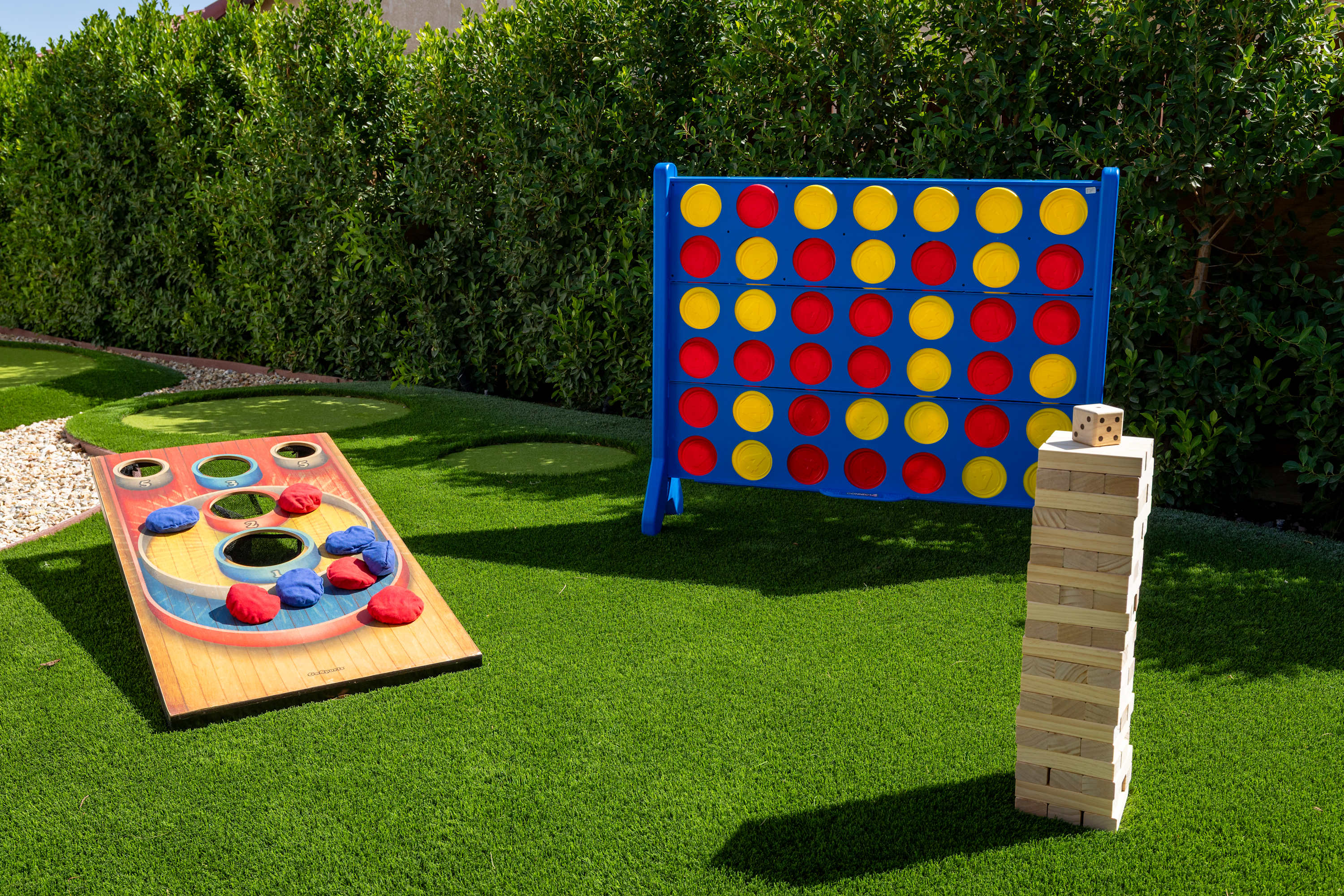 🏌️♀️ Outdoor Games – Enjoy the private Putting Green, Bocce Ball, Disc Golf, Cornhole, Giant Jenga, and Connect Four.