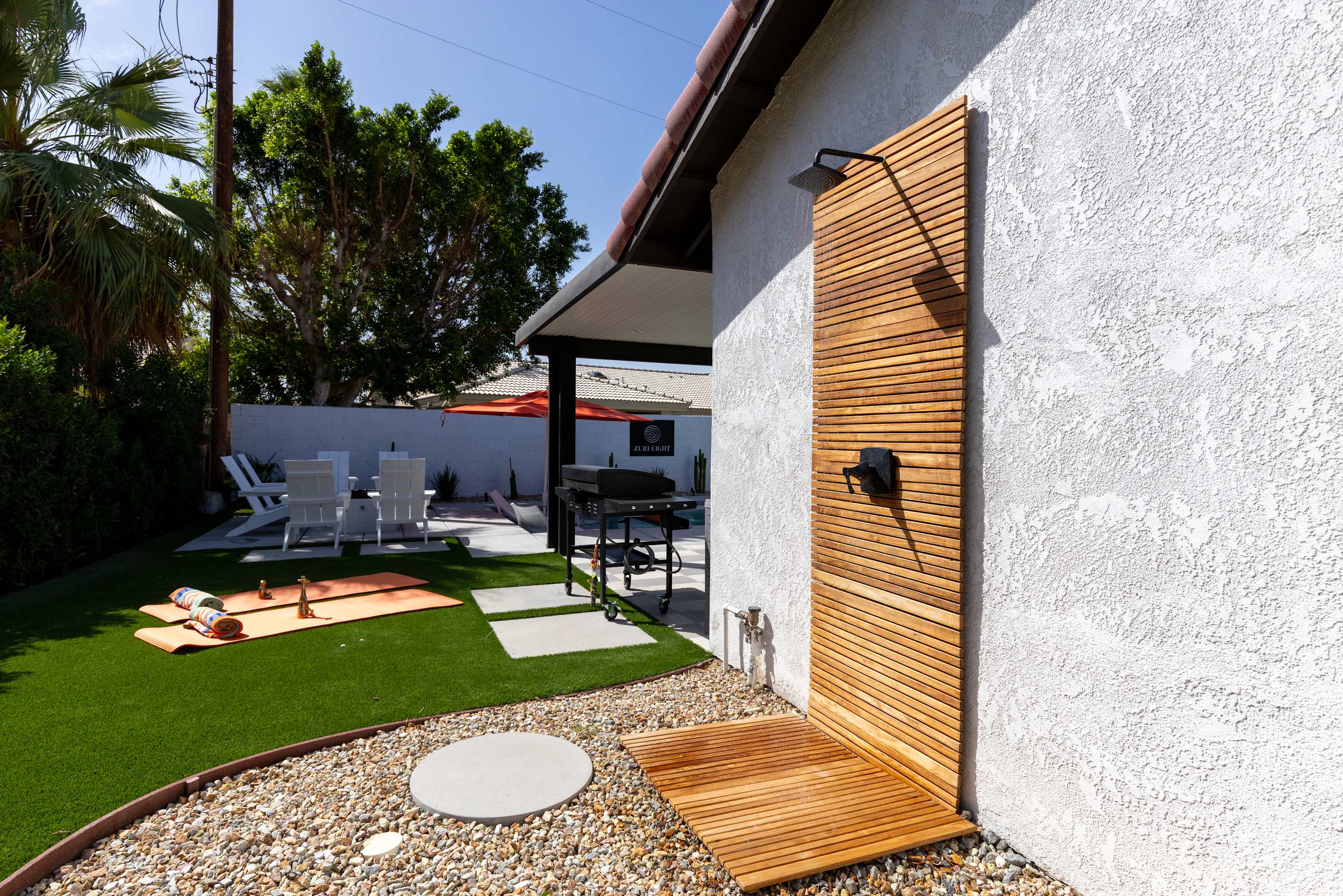 🔥 Outdoor Blackstone Griddle – Savor unforgettable meals under the desert sky with the outdoor Blackstone griddle. Fueled by natural gas, it’s ready whenever you are — no propane tanks to swap. All barbecue accessories are included, so grilling and entertaining is effortless. Gather at the 6-seat covered patio table and enjoy delicious food, laughter, and the magic of the desert evenings.