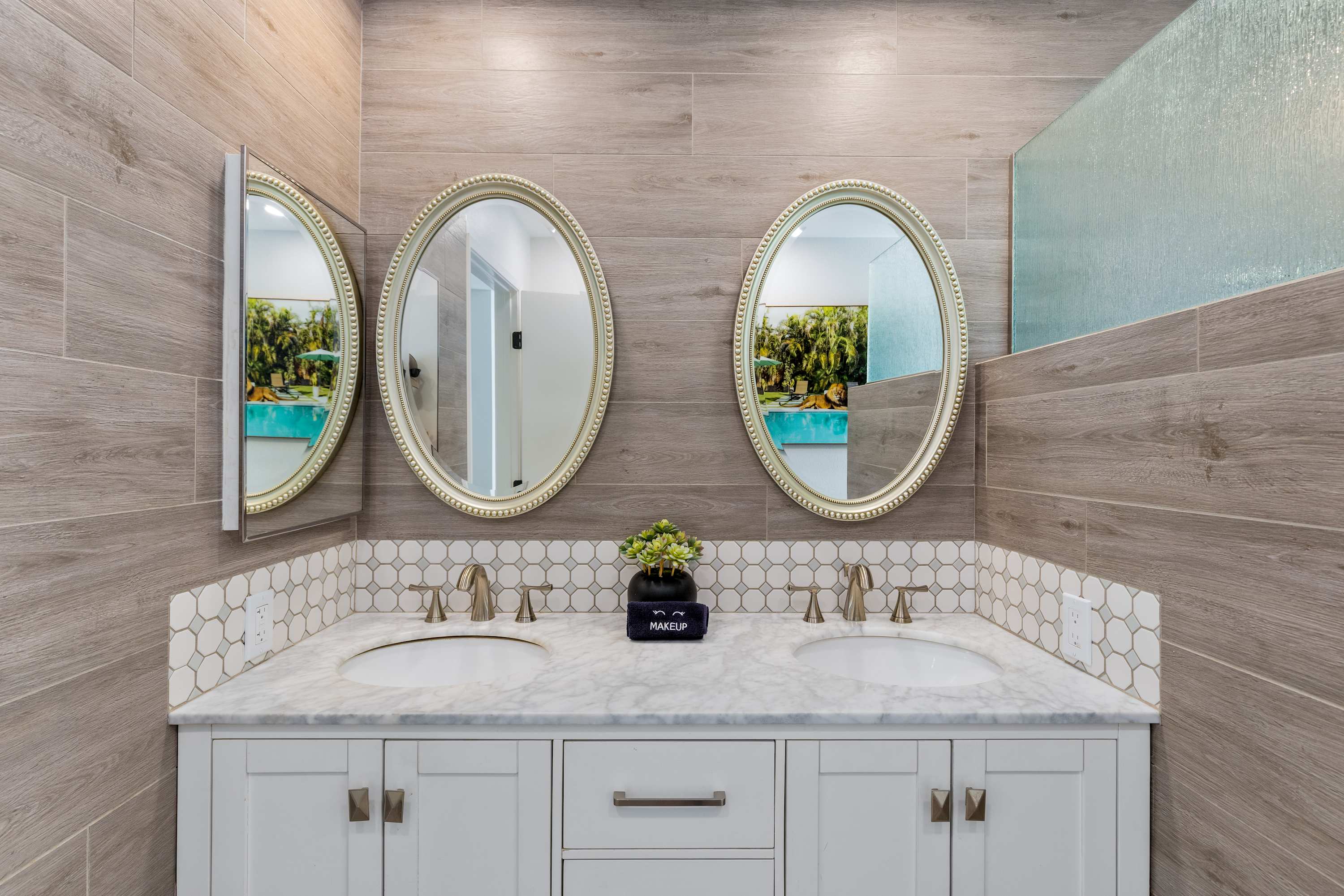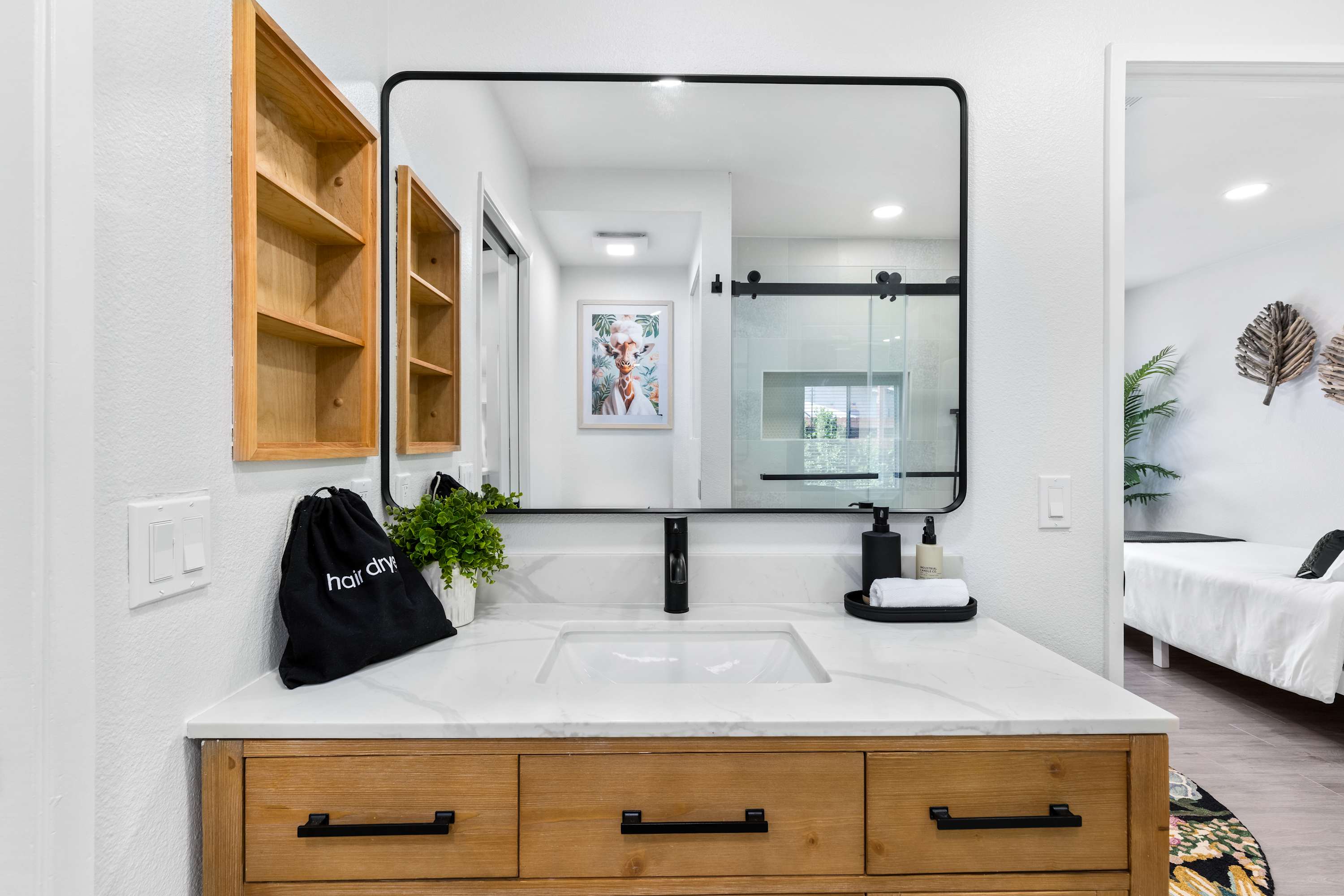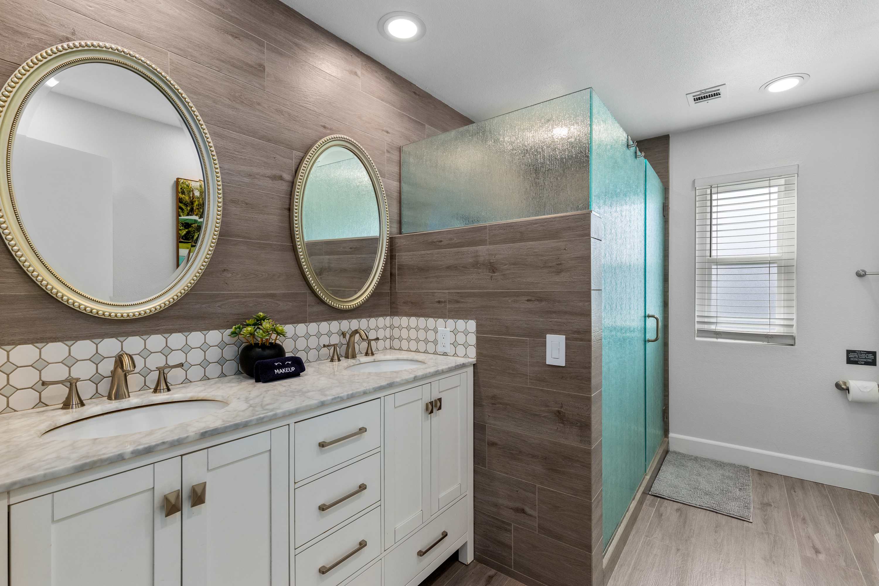 🌺 Ensuite Master Bath – Step into your personal retreat, where modern luxury meets serene comfort. Refresh in the walk-in rain shower with a relaxing quartz bench, or get ready side by side at the dual sinks. Soft, plush towels and eco-friendly bath products — including body wash, shampoo, and conditioner — invite you to indulge in a spa-like experience without leaving your room. Every detail is designed to make you feel pampered, rejuvenated, and completely at ease.