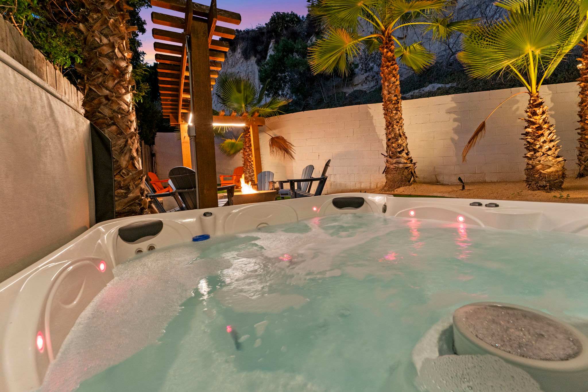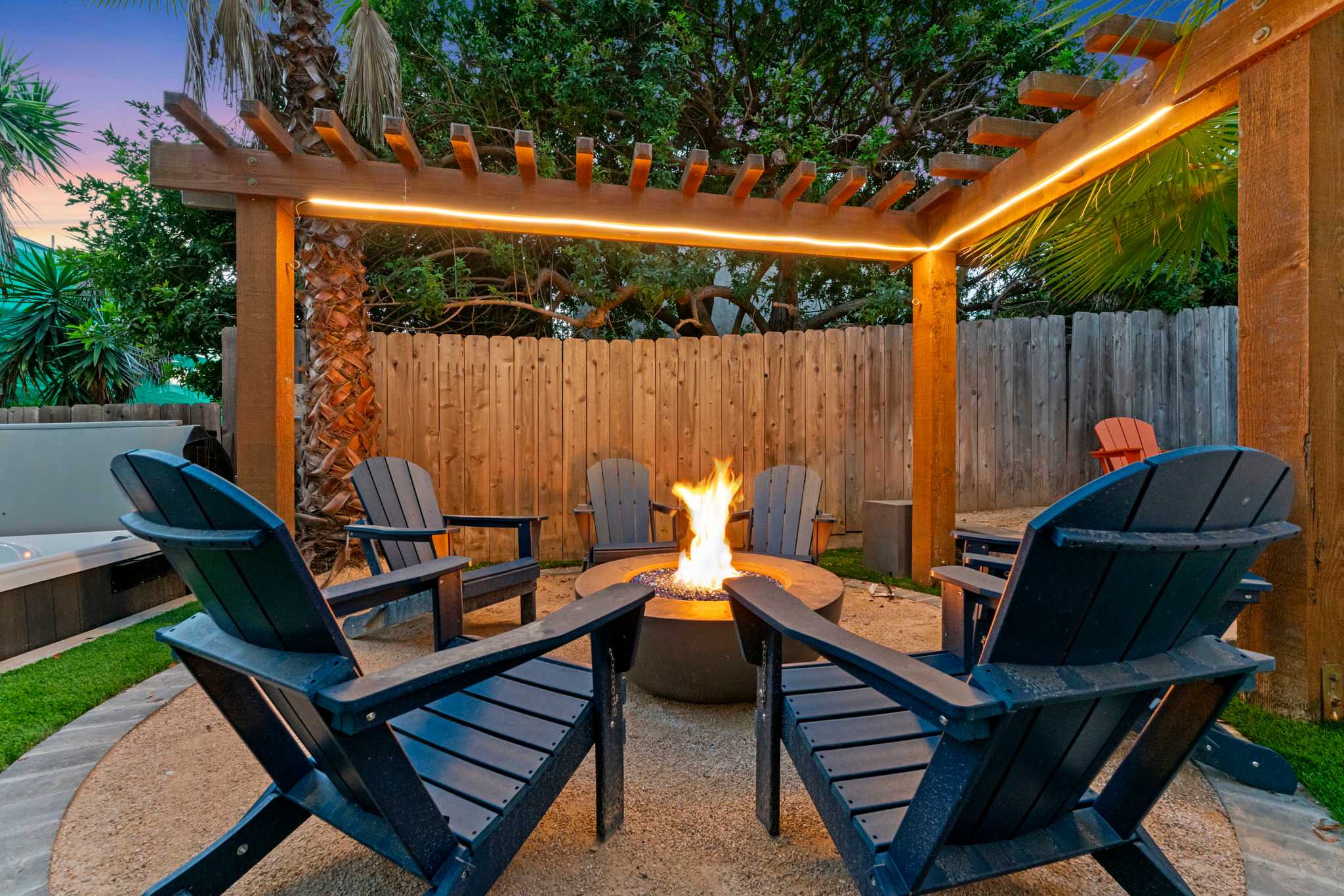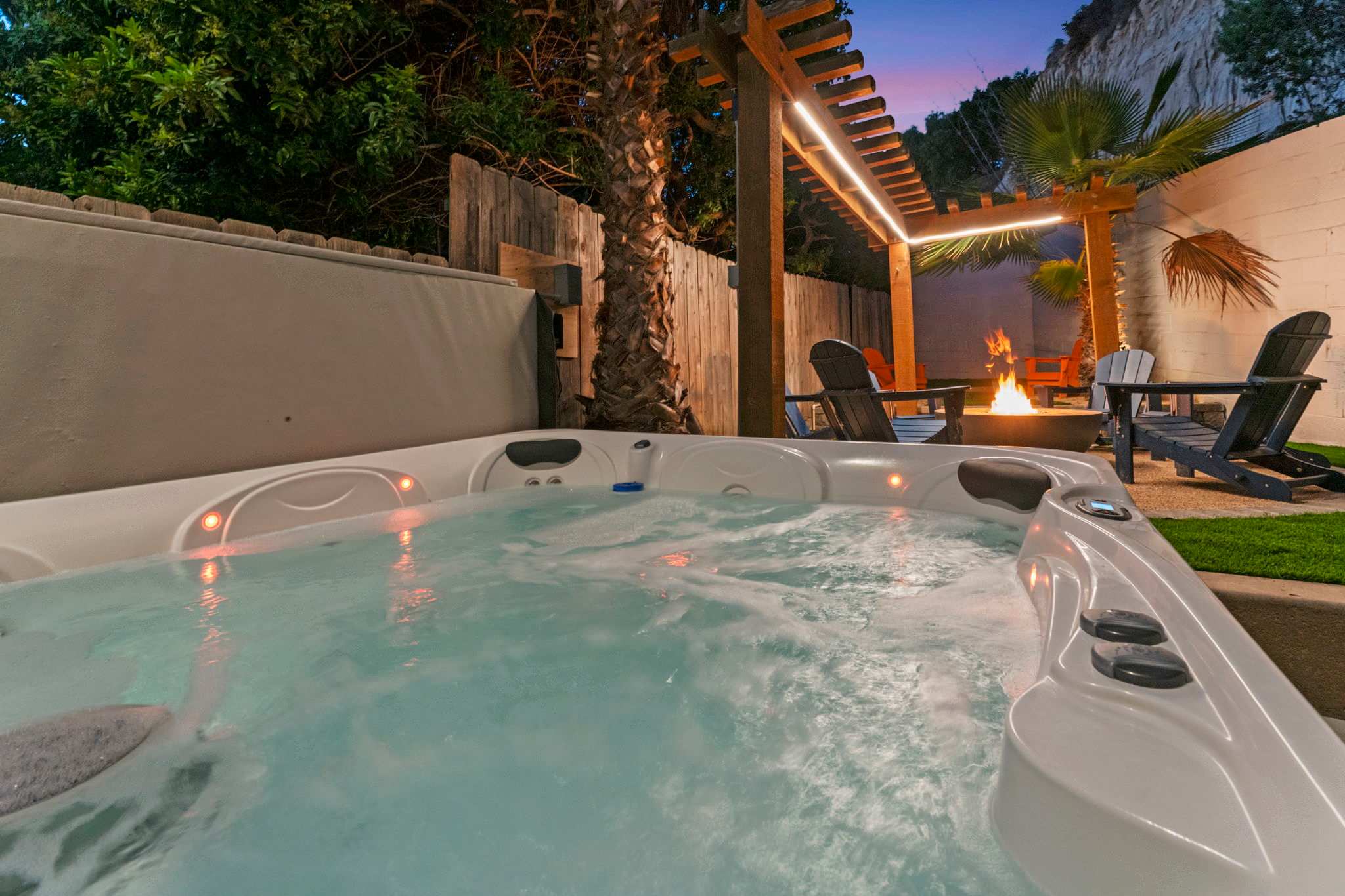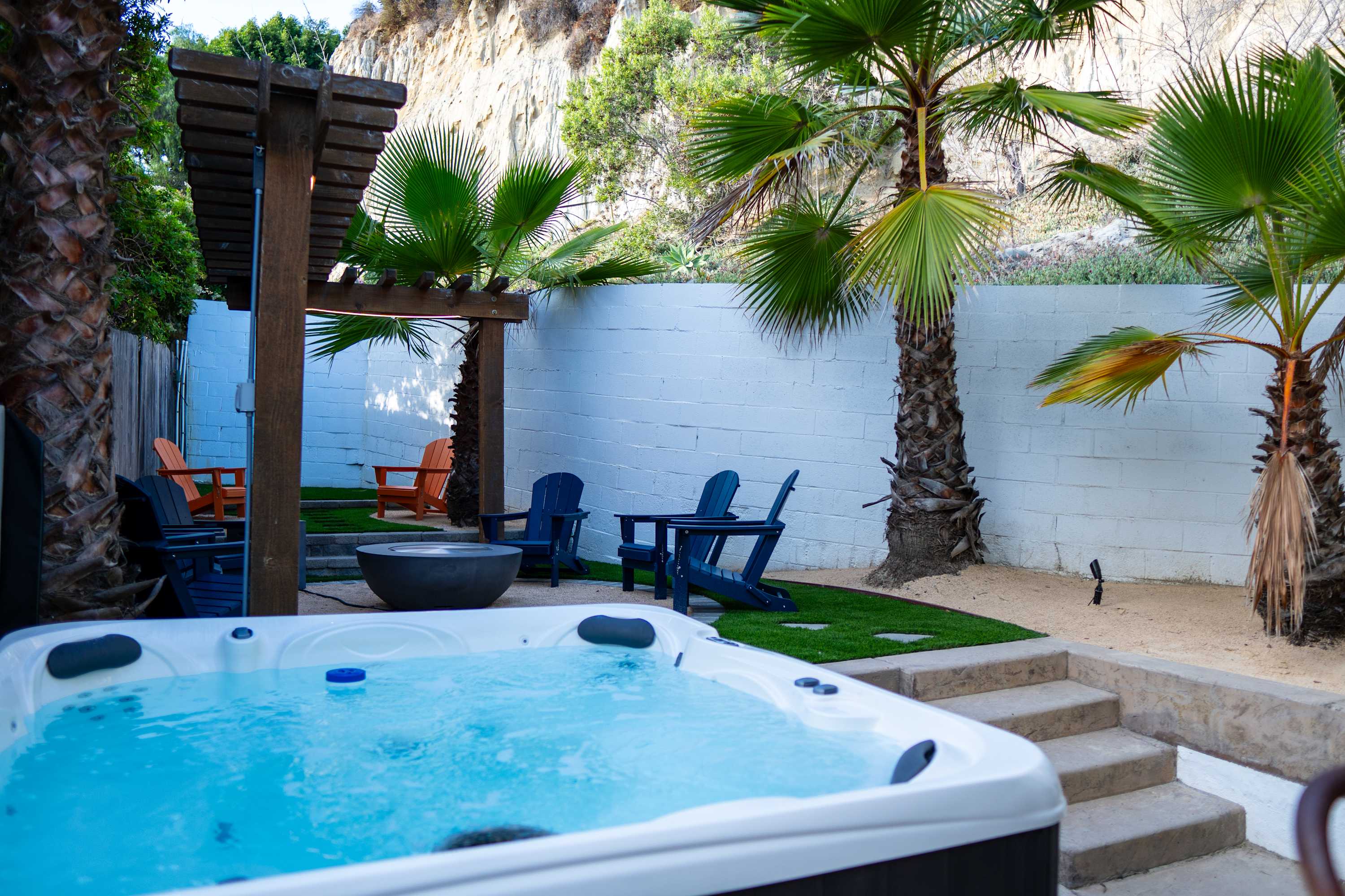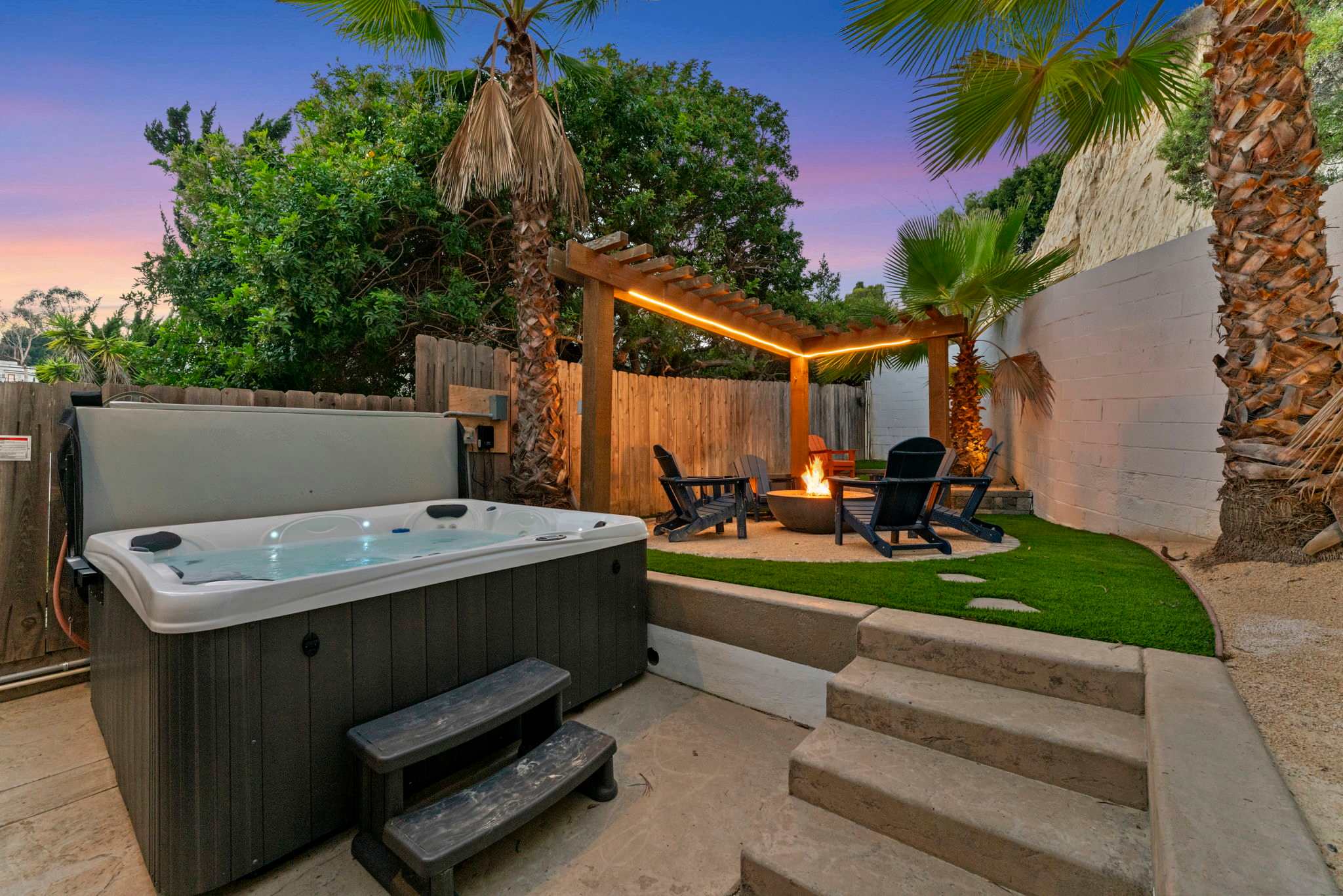 * Shared Outdoor Oasis: Hot tub, fire pit, BBQ grill, and outdoor dining area.