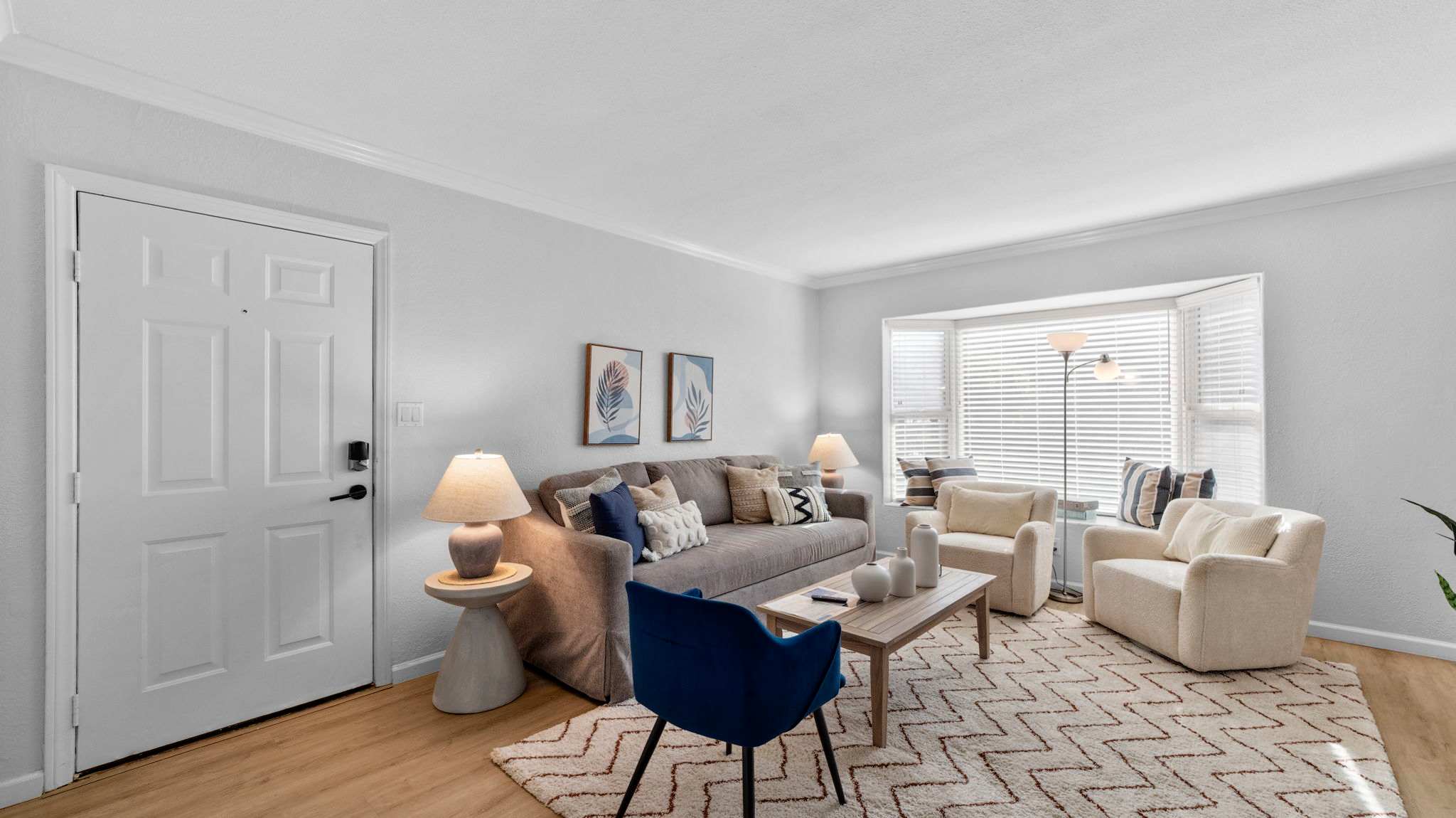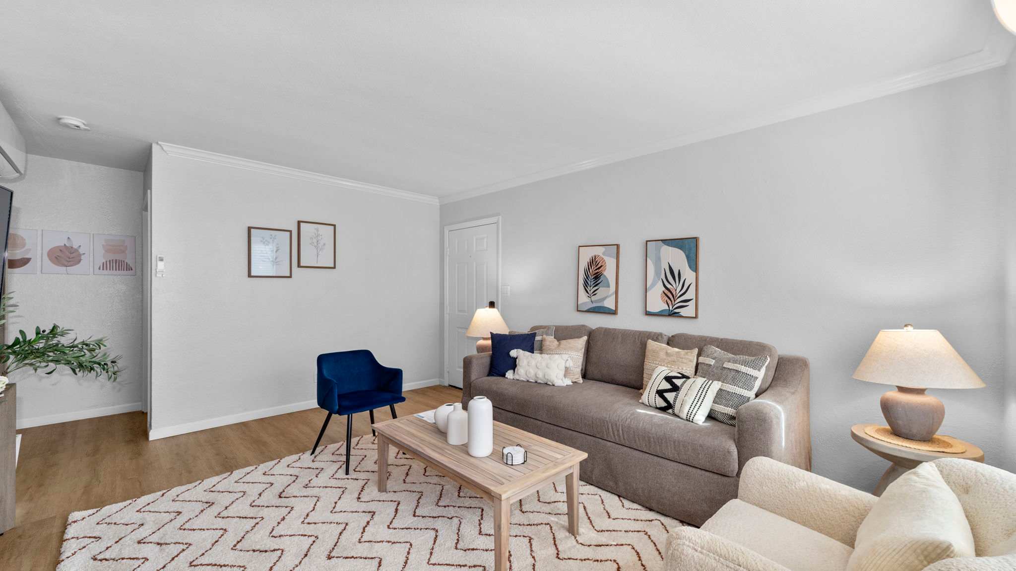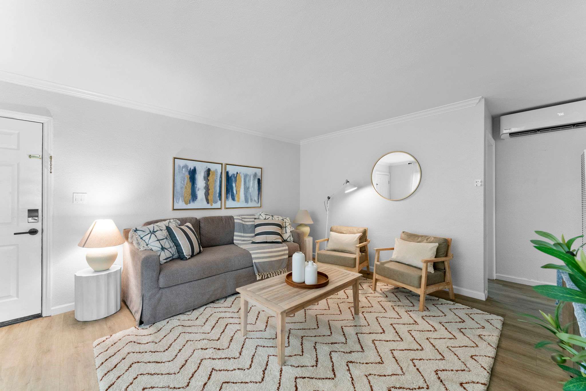* Comfortable Living: Living area with a mini-split A/C unit and a Smart TV.