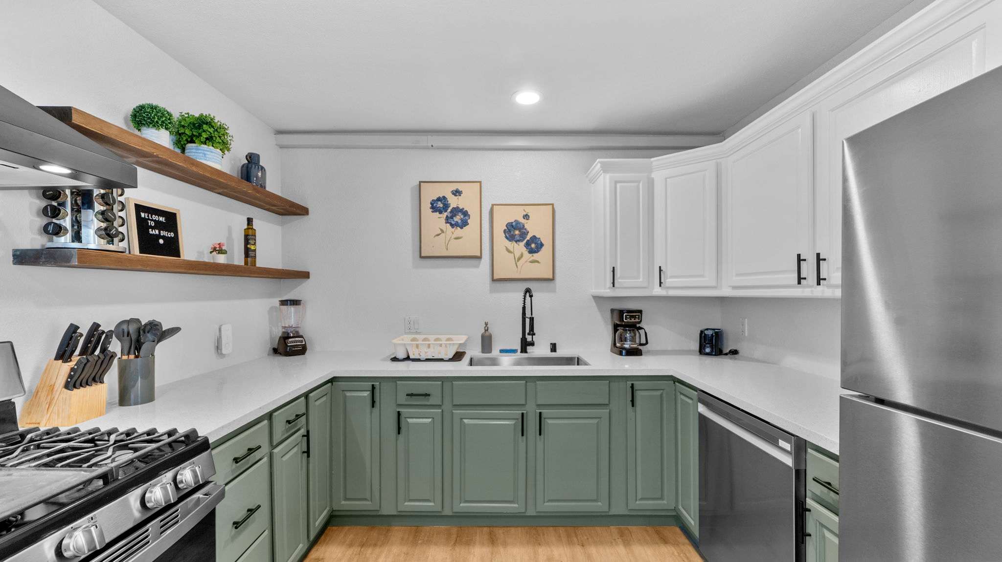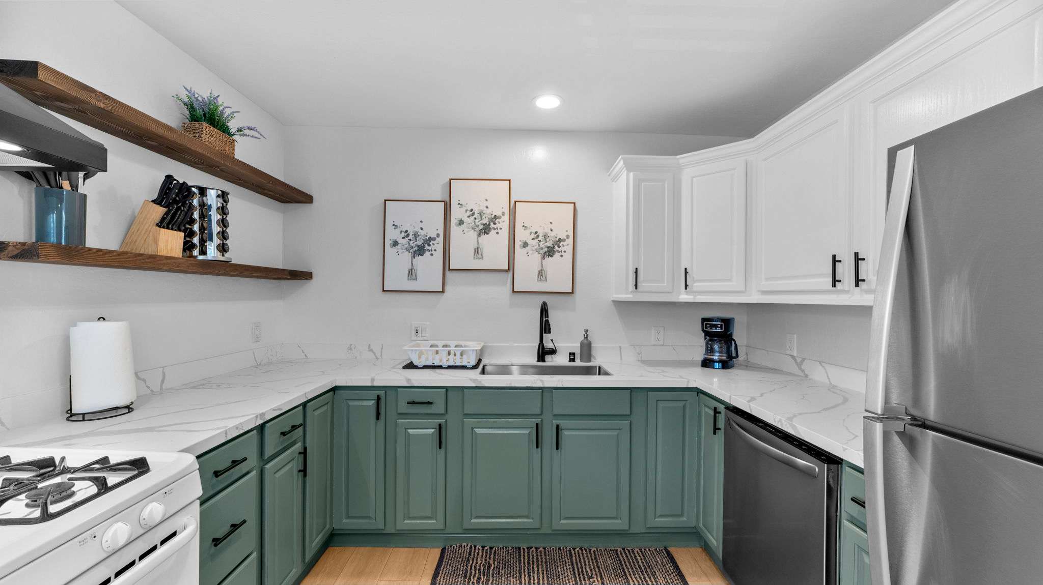 * Fully Equipped Kitchen: Includes an oven, microwave, dishwasher, and refrigerator.